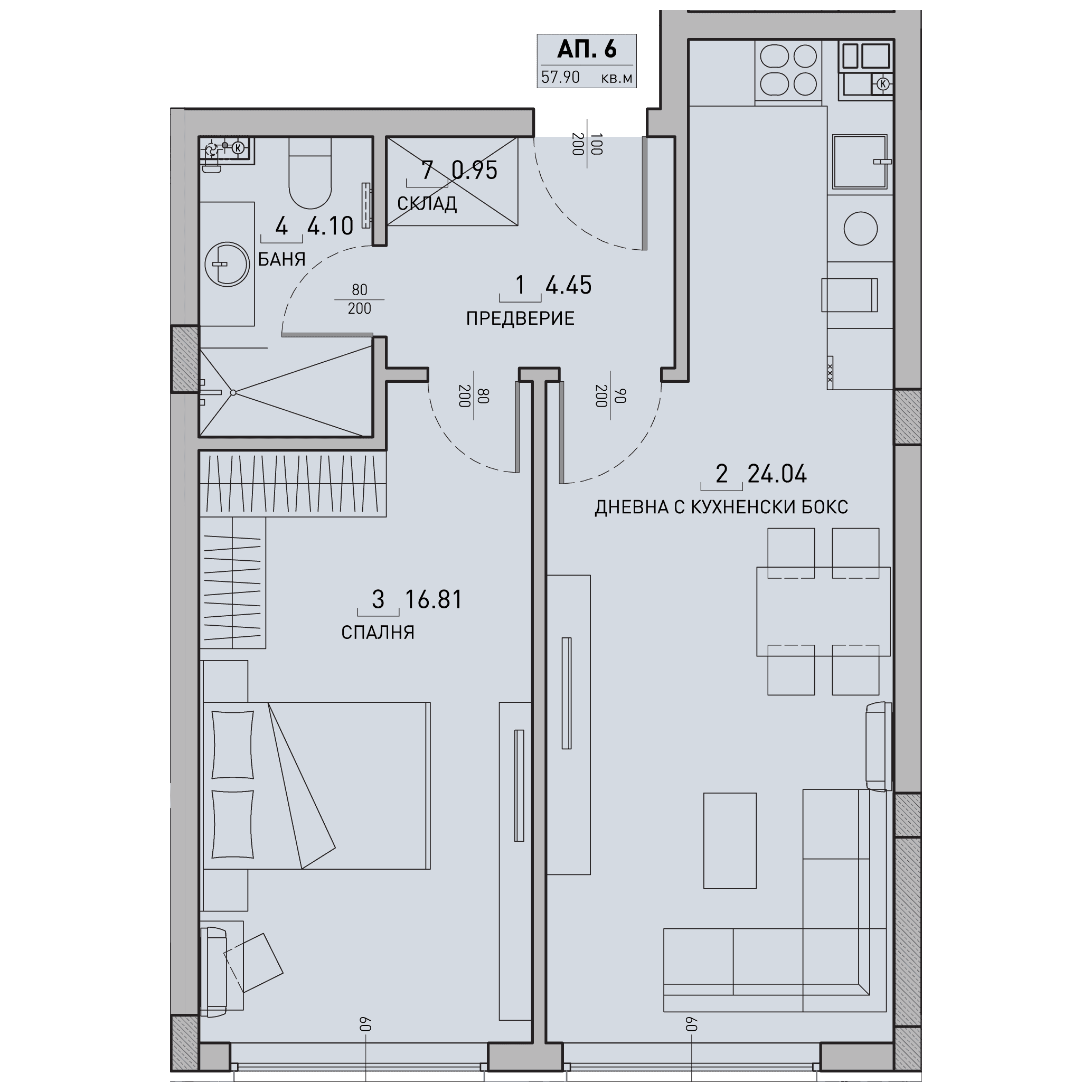 Чиста площ: 57.9 м²